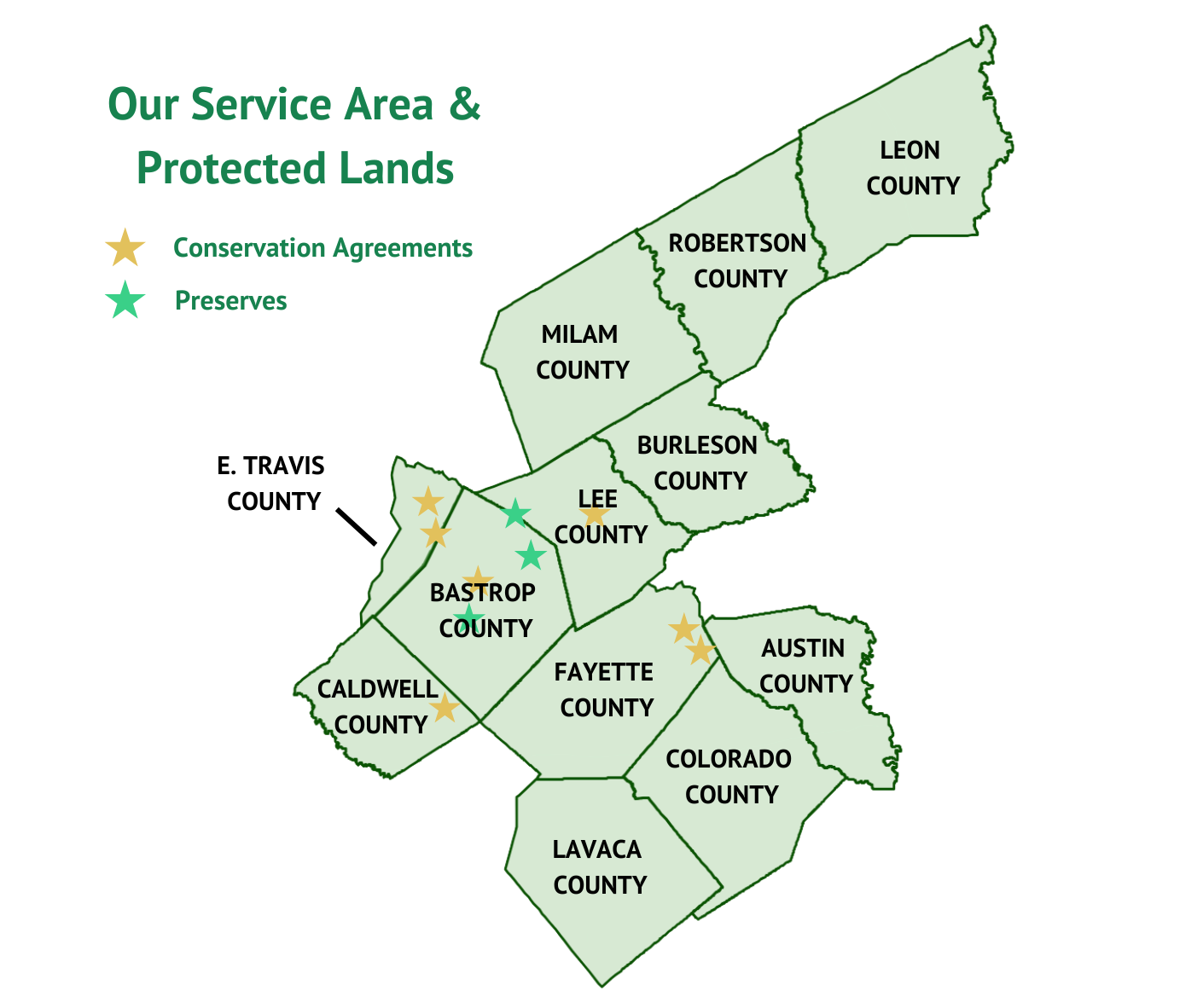 PPLT has evolved to protect natural and cultural resources through education and the preservation of open space throughout Central Texas. We serve Austin, Bastrop, Burleson, Caldwell, Colorado, Fayette, Lavaca, Lee, Leon, Milam, Robertson and Travis Counties. We both hold conservation agreements and own property within the region we serve.